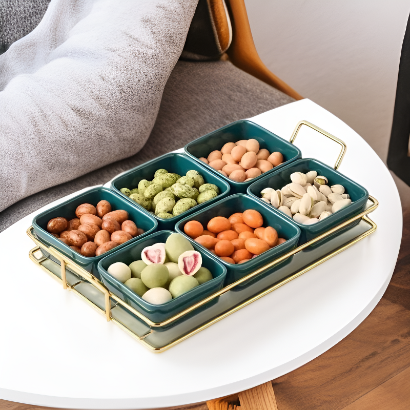 ● 고급스러운 디자인으로 거실 분위기를 한층 더 세련되게 연출해주는 럭셔리 과일 및 견과류 접시입니다. ● 다양한 스낵, 과일, 견과류 등을 한 번에 담을 수 있어 실용적이며, 가족 모임이나 손님 접대 시에도 완벽하게 어울립니다. ● 내구성이 뛰어난 프리미엄 소재를 사용하여 오랫동안 변형 없이 사용 가능하며, 세척과 관리가 간편합니다. ● 넉넉한 사이즈와 분리형 칸막이 디자인으로 종류별로 깔끔하게 담아낼 수 있어 보기에도 좋고 사용하기도 편리합니다. ● 현대적인 감각과 우아함을 동시에 갖춘 인테리어 소품으로 거실의 품격을 한 단계 높여줍니다.